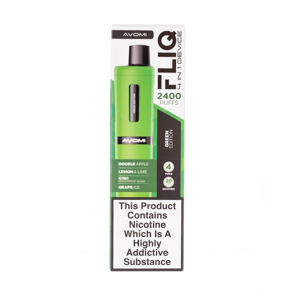 Vape more for longer with the Avomi Fliq 4 in 1, a prefilled pod kit that uses 4 x 2ml pods fitted into a rotating chamber. Enjoy up to 2400 puffs and mix up flavours so you never get tired. The Fliq Pod Kit has a 950mAh battery and showcases outstanding build quality that makes using it a joy. Each pod is filled with 20mg of nicotine salts – ensuring great flavour and smooth satisfaction of the strongest nicotine cravings.