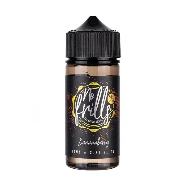 Bananaberry 80ml (50/50) Shortfill E-liquid by No Frills is a smooth blend of ripe bananas whipped up with fresh strawberries. A creamy vape packed with a harmonious medley of delicious fruit.