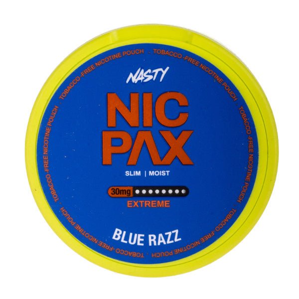Nasty Nic Pax Blue Razz Nicotine Pouches provide a discreet way to satisfy your cravings without tobacco smoke or accessories. They release a tangy, sour blue raspberry flavour that becomes more intense with each second left at a 16mg or 30mg nicotine strength, over the span of 30 minutes.