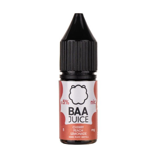 Cherry Peach Lemonade Nic Salt E-Liquid by Baa Juice combines wild cherries, juicy peach and sparkling lemonade to craft this ultra-sweet, fruity e-liquid flavour. Please your tastebuds with a whimsical flavour from the offset.