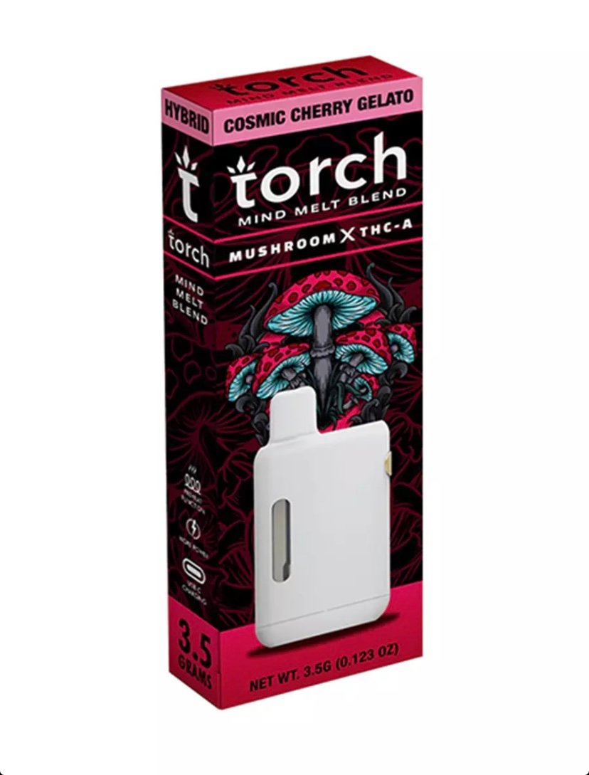 Don’t wait; ignite your senses, explore new dimensions of flavor, and let the Cosmic Cherry Gelato Torch Mind Melt Mushroom x THC-A Blend Vape 3.5G transport you to an otherworldly realm of sensations that will linger with you long after the journey is over.