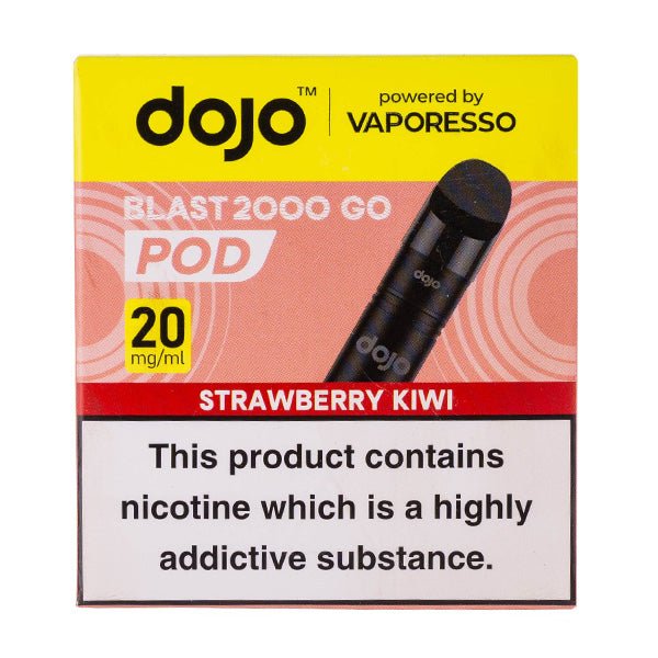The Strawberry Kiwi Dojo Blast 2000 Go Prefilled Pod + Refill by Vaporesso is compatible with the Vaporesso Dojo Blast 2000 Go Pod Kit. This pod and refill features sweet strawberry notes and tart kiwi from the offset. A popular fruity combo that is loved worldwide. Available in 20mg.
