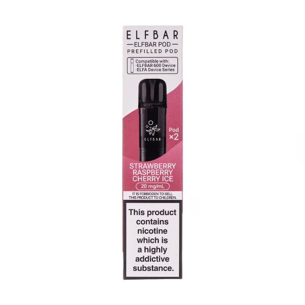 The Strawberry Raspberry Cherry Ice Elf Bar 600 Prefilled Pods are to be paired with the Elf Bar 600 Pod Kit. These pods feature sweet notes of strawberries, tangy raspberries and wild cherries with a blast of menacing ice. Thank us later!