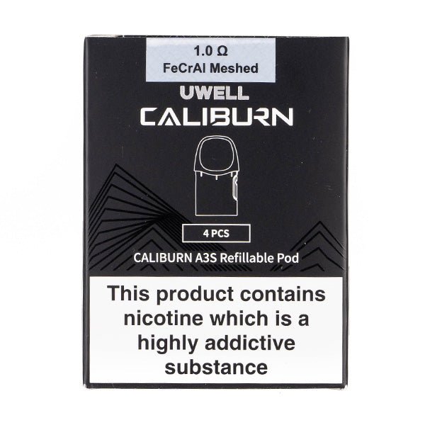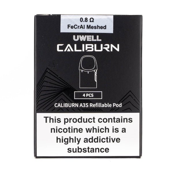 Uwell’s Caliburn A3S refillable pods are designed for MTL (mouth-to-lung) vaping. They are refillable fixed coil pods that come in a pack of four and are compatible specifically with the Caliburn A3 and Caliburn A3S vape kits only.