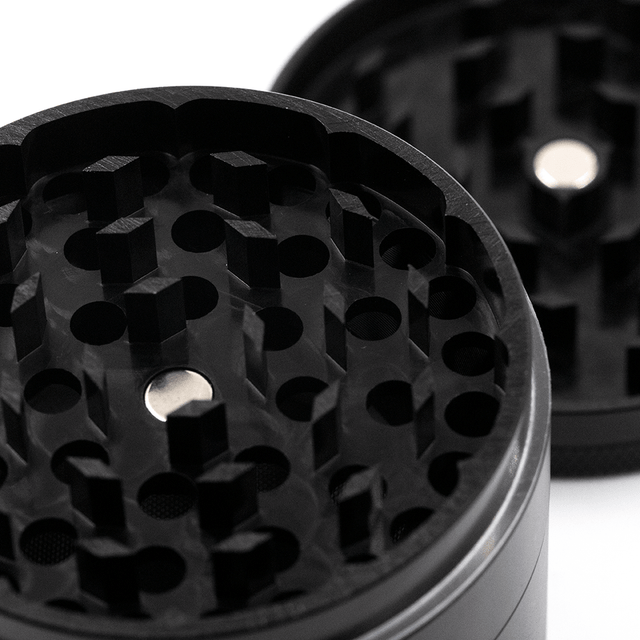 This 4-part grinder is ideal for grinding herbs, storing them, and collecting kief! The grinder’s teeth are sharp, making the grinding process easy. Additionally, the teeth can be filed to enhance their sharpness. The magnetized lid and threaded design ensure that all chambers stay securely together and allow for a smooth twist when opening and closing. Made from lightweight aluminium, this grinder is manufactured using Computer Numerical Control (CNC) technology, ensuring precise construction and excellent quality.